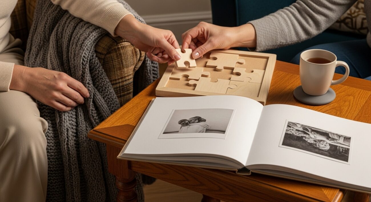 - Aktywność umysłowa: Regularne ćwiczenia umysłowe, takie jak krzyżówki (dostosowane do możliwości), czytanie, oglądanie zdjęć rodzinnych, porządkowanie szuflad, gry w karty, mogą opóźniać postępy choroby i podtrzymywać funkcje poznawcze.